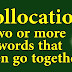 There are about six main types of collocations: adjective+noun, noun+noun (such as collective nouns), verb+noun, adverb+adjective, verbs+prepositional phrase (phrasal verbs), and verb+adverb.